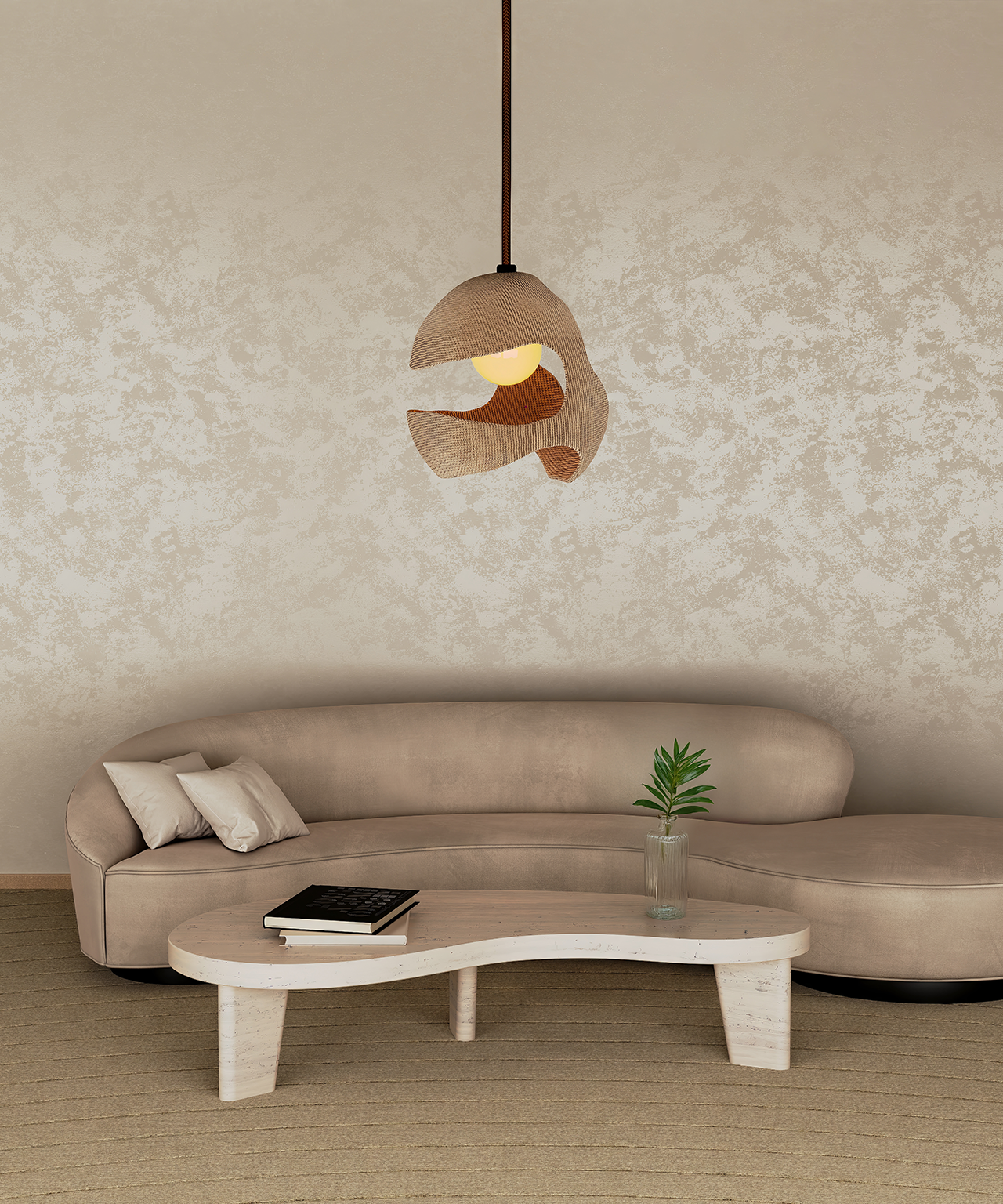 The Petite Chani pendant from Monarch Lighting captures the essence of the desert with an organic open shade made of handwoven manila rope that's suspended from an antique satin brass frame.